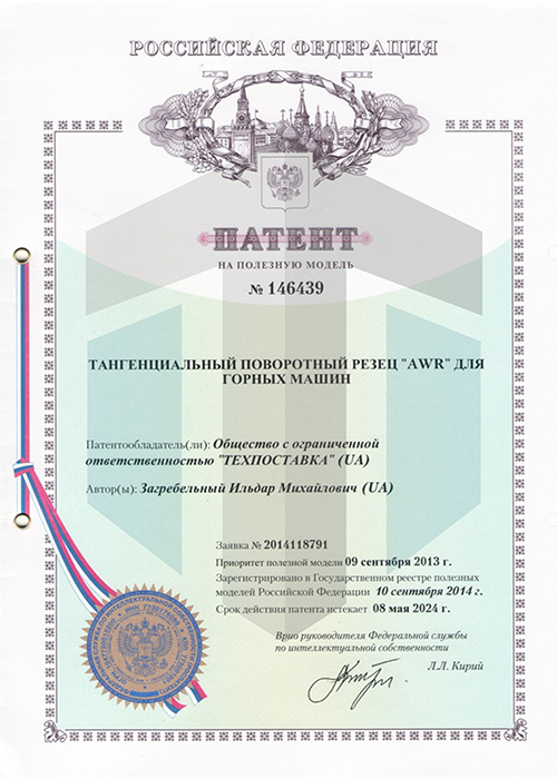 AWR系列截齒實用新型專利證書