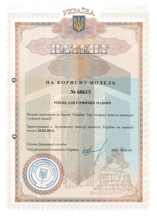 礦用截齒實用新型專利證書