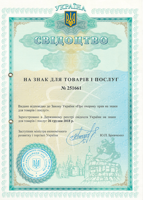 烏克蘭商標證書